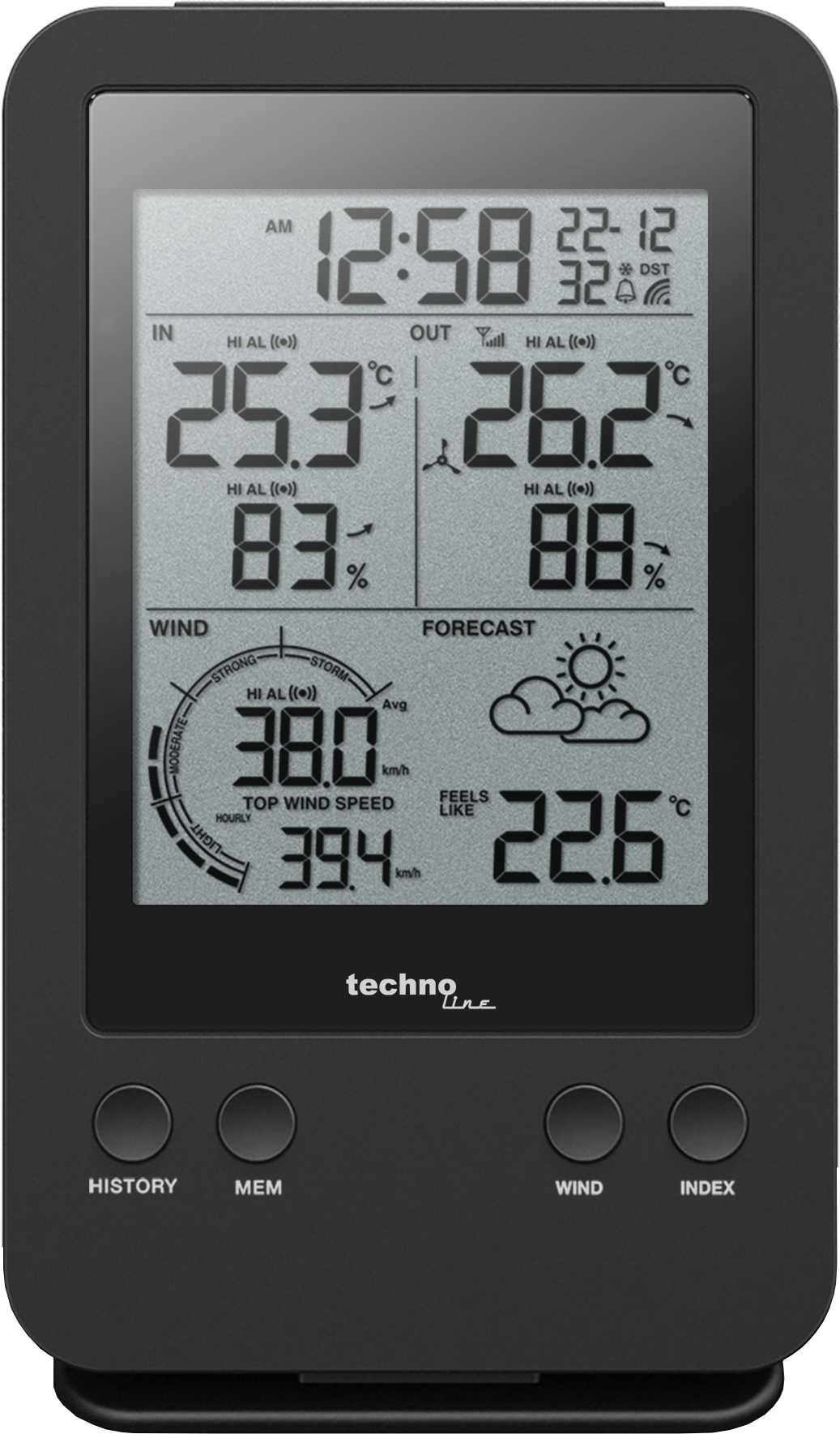 • Anzeige von Taupunkt, Windchill und gefühlter Außentemperatur "Feels Like"