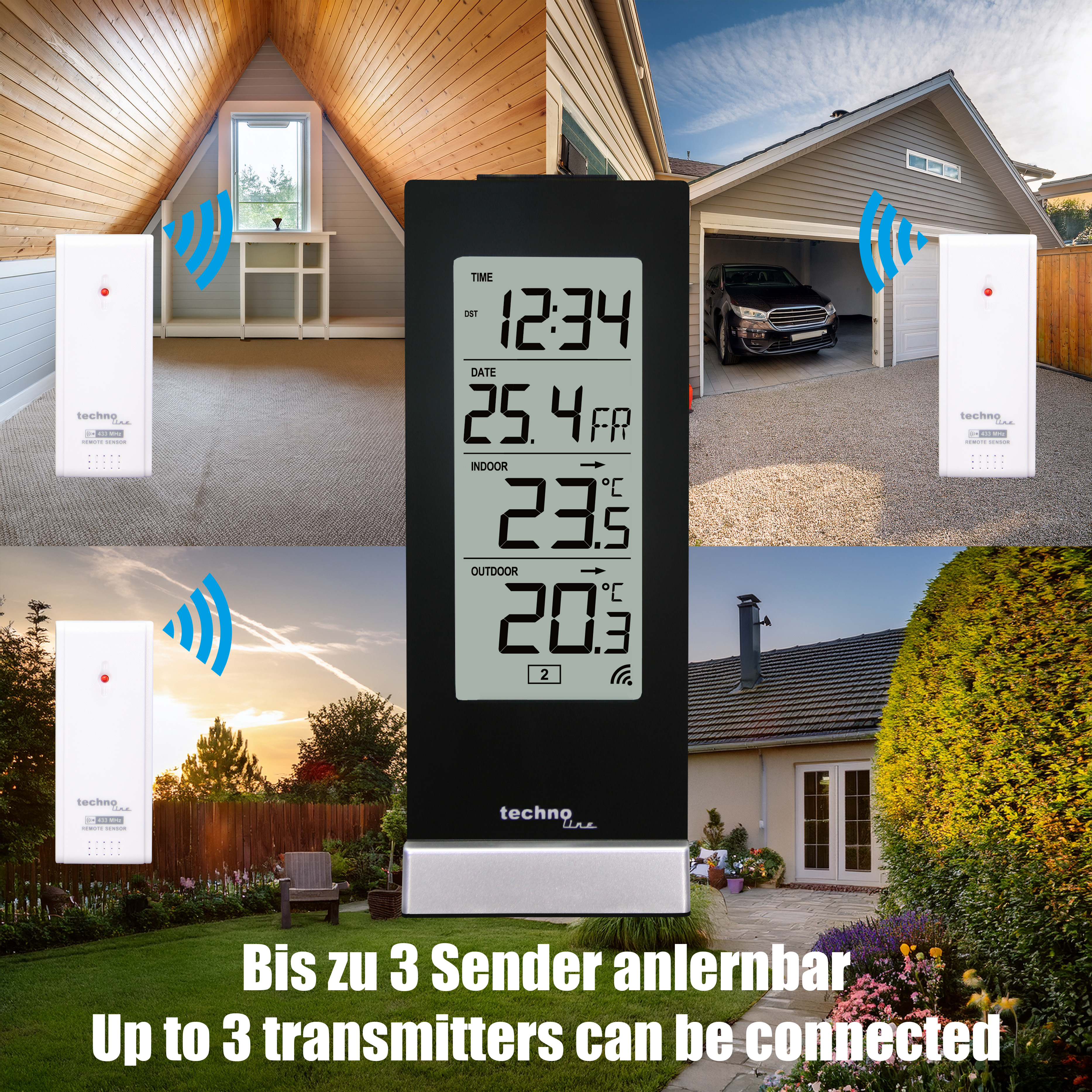 • Bis zu 3 Außensender empfangbar