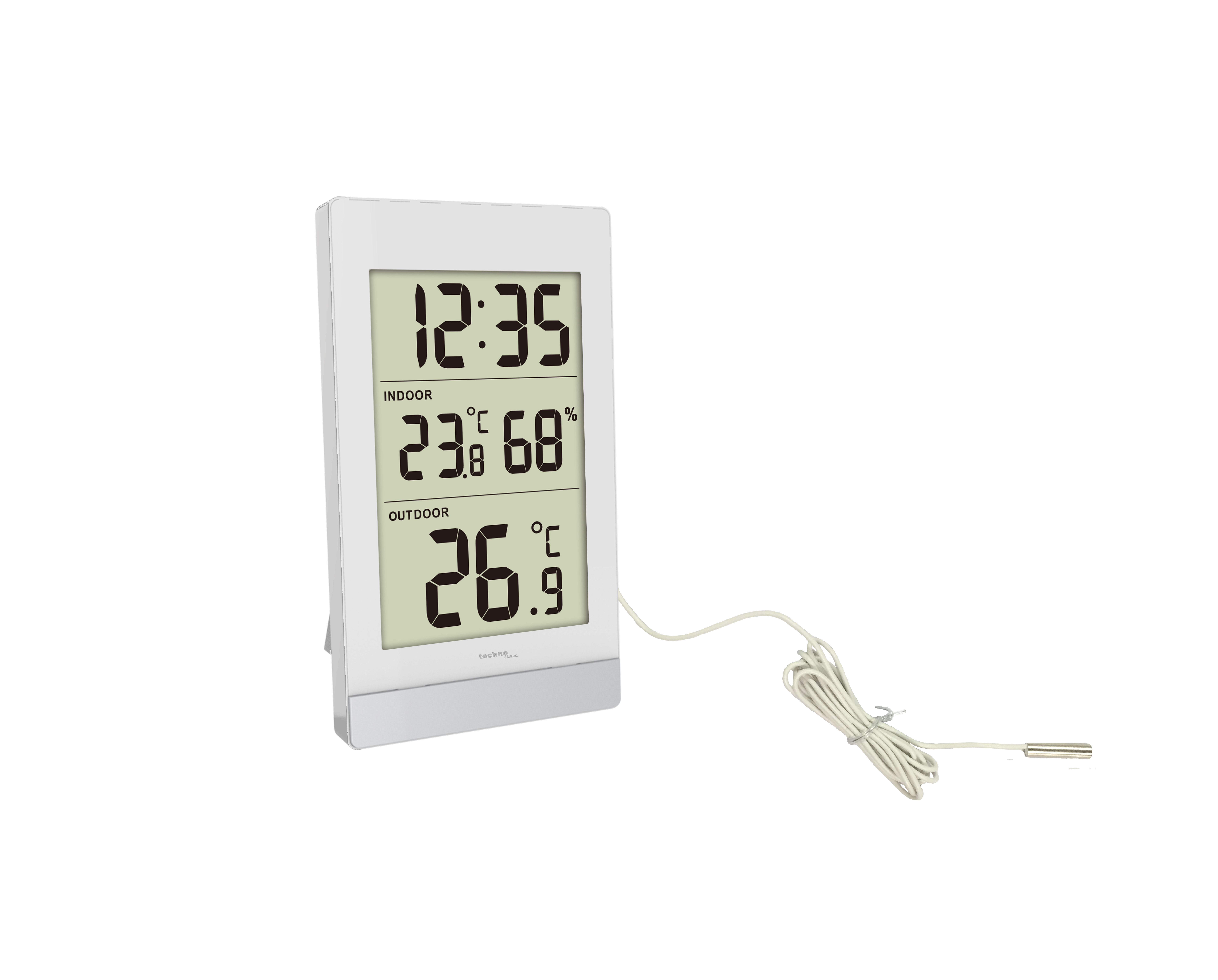 Für alle die der Funkübertragung nicht trauen, hat technoline einen Klassiker der Temperaturstationen in ein modernes, stilvolles Gehäuse gesteckt. Alle wichtigen Informationen, wie Temperaturen, Luftfeuchte und Uhrzeit, können schnell auf dem übersichtlichen Display abgelesen werden. Unkompliziert, auf klassischem Weg, wird die Außentemperatur mit der Kabelsonde gemessen.