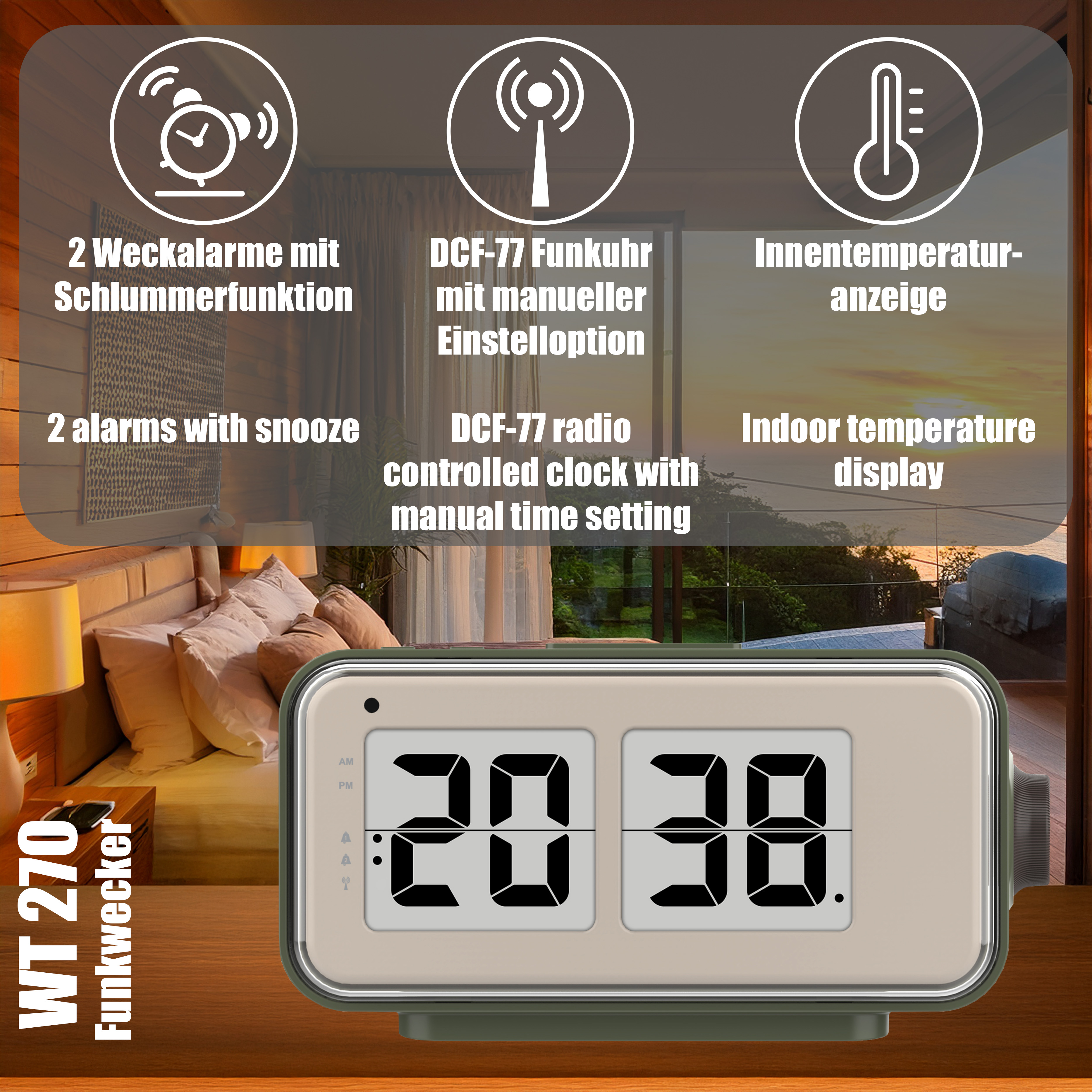 • 2 Alarme mit Schlummerfunktion