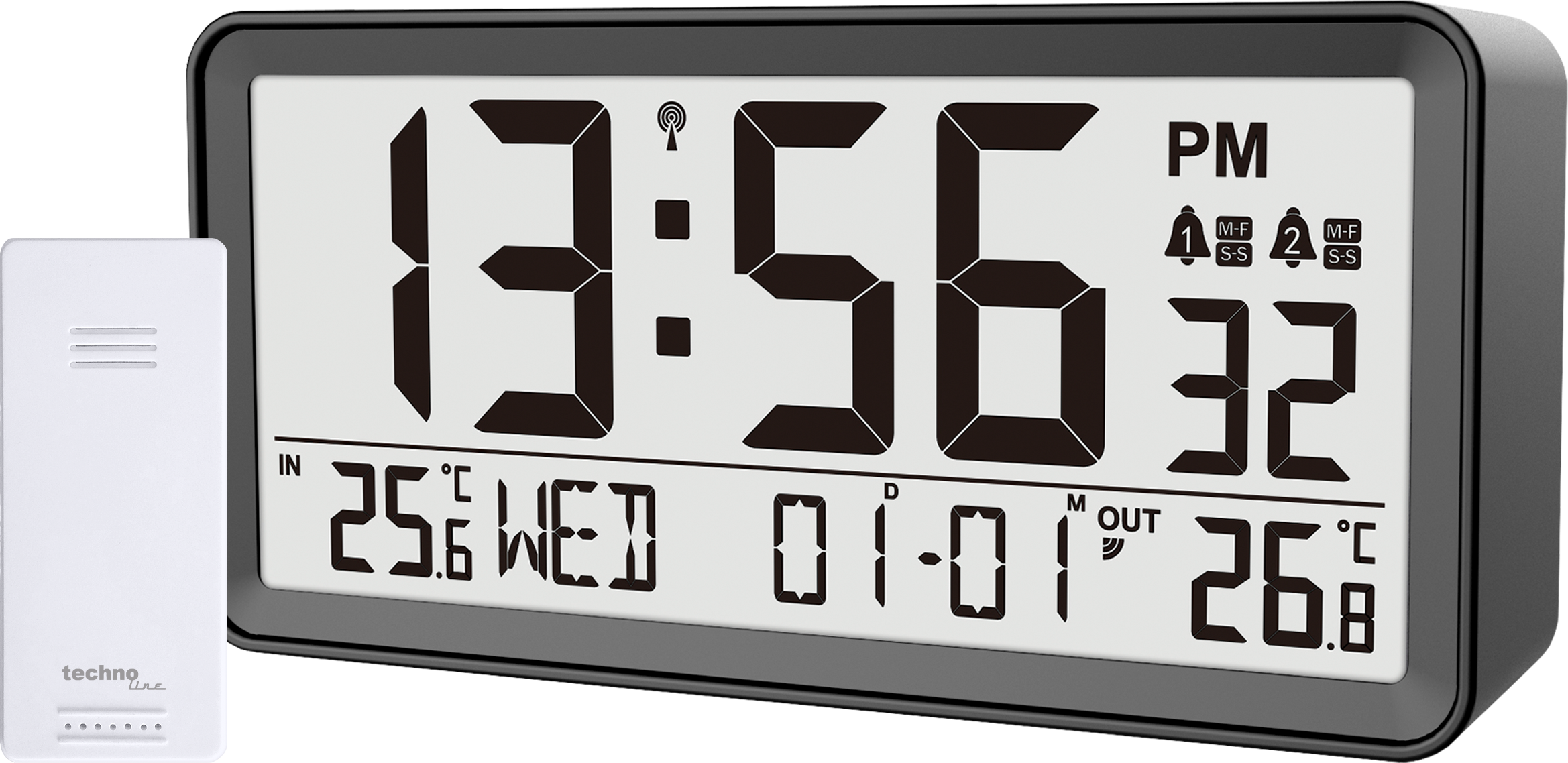 inkl. Außensender • DCF77 Funkuhrzeit mit manueller Einstelloption