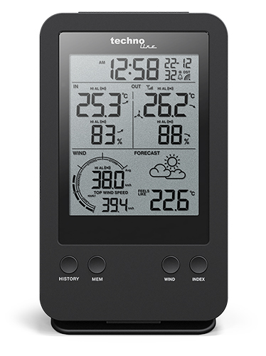 -Anzeige von Taupunkt, Windchill und gefühlter Außentemperatur "Feels Like"