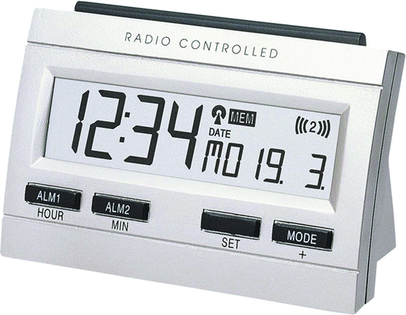 silber -DCF-Funkuhr mit manueller Einstelloption